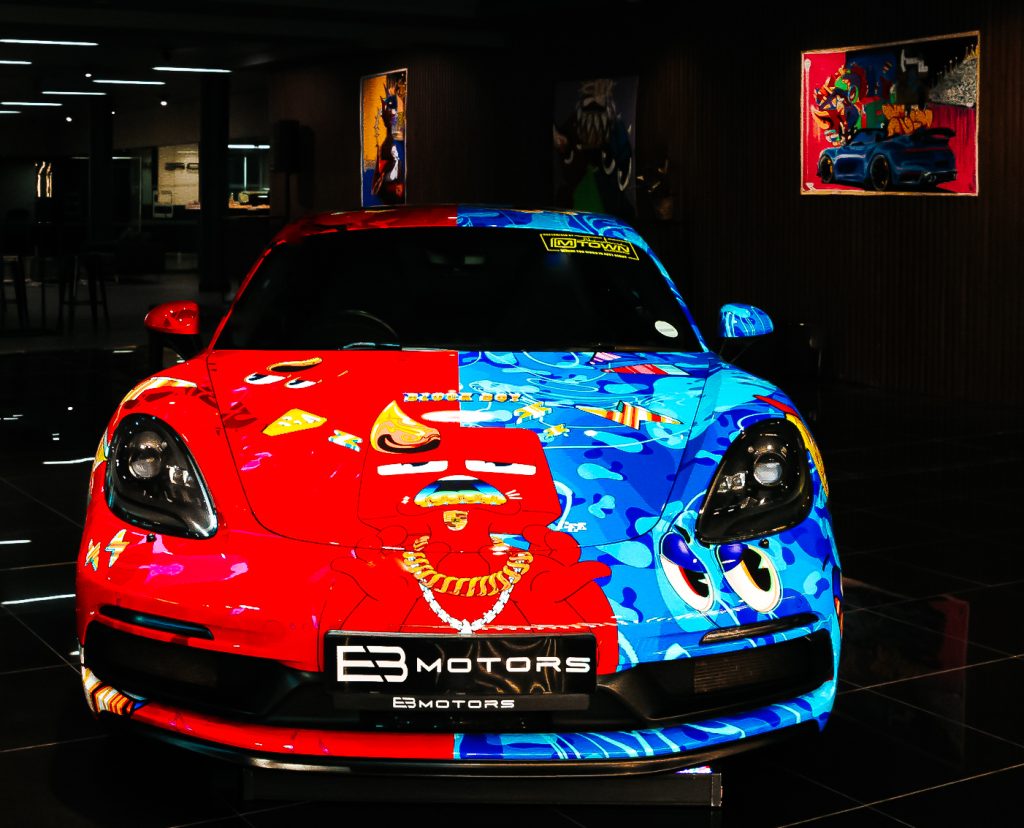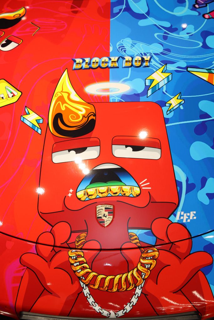 The art on both the Mclaren & Porsche represents the brand through my use of iconography and special design motifs that can be identified from different characters in the BBNF universe. For example, the prominent use of teeth on the Mclaren is a reference to Big Blu, one of Blockboy’s closest companions. Phrases used like w’s only & dream big kid reflect our mission to inspire the next generation to pursue their dreams and to trust their ideas.
