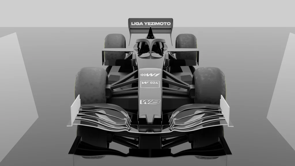 The W024 V25 arrives in an elegant glossy black finish, embodying the core identity of WANNABENZO with a sleek, aggressive presence on track. This deep black base is complemented by white branding, featuring all WANNABENZOlogos prominently across the bodywork. Adding a striking contrast, bright lime detailing runs through key sections of the car, enhancing its sharp aesthetic. The WB logo is seamlessly integrated within these lime accents on the wheels, creating a bold visual signature at speed. The rear spoiler carries the name ‘Liga Yezimoto’, marking the internal racing league and cementing its significance within the WANNABENZO universe.